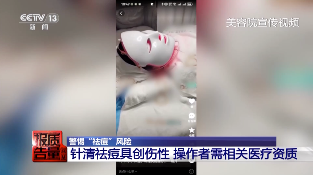 据小月回忆,“针清”过程中,好意思容师用犀利针具挑破痘痘后,敷上一些“消炎类”的面膜进行舒徐。然而否进行透顶消毒,她并不明晰。